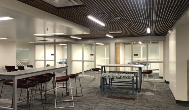 Our team designed the renovation of 80,000 square feet of classroom, instructional support, and administrative spaces, creating modern, flexible environments for learning and collaboration. The project also includes an 80,000-square-foot athletic expansion featuring a new practice gym with an indoor walking track, concessions area, wrestling room, fitness center, and locker rooms. The locker room facilities are specifically designed to meet ICC 500 standards for storm shelter design and construction, providing both everyday functionality and enhanced occupant safety.