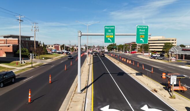 The project improved roadway conditions, upgraded traffic infrastructure, and enhanced accessibility along this heavily traveled corridor. Construction was completed over two years in two phases.